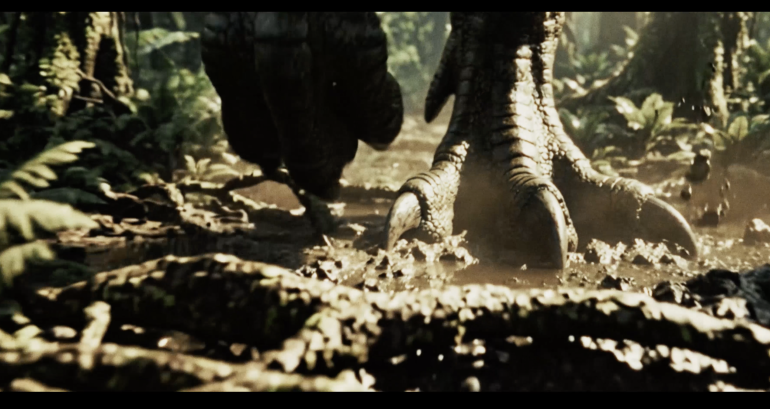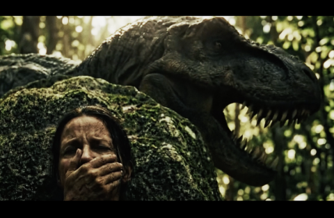 Komplet med Hollywoodmusik, actionklip, cinematisk production value – og en ung kvinde på flugt fra en kæmpestor Tyrannosaurus Rex.