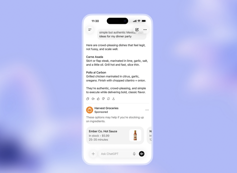 Du kan se et eksempel på, hvordan annoncering i ChatGPT vil se ud nedenfor: