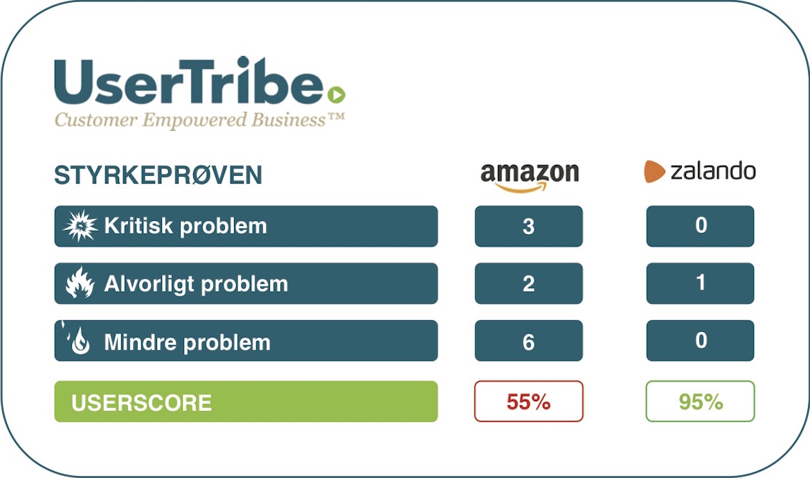 Det viser en styrkeprøve fra UserTribe, der denne gang henter inspiration fra de bedste på markedet inden for nethandel ved at sætte verdens største online-butik, Amazon, op mod den største i Danmark, den tysk-baserede modebutik Zalando.