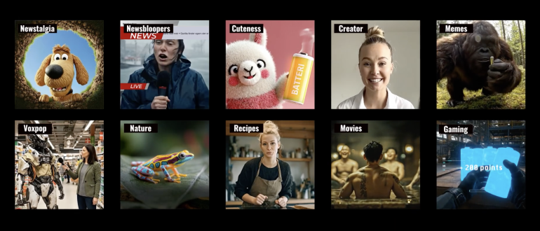 Se fire af de i alt 10 AI-genererede film efterfulgt af en explainer-film, hvor fortælleren bliver overrasket over, at man ‘bliver hængende’ og altså ikke har valgt en af social trends-filmene.
