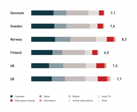 Syv ud af 10 bruger en tablet, seks ud af 10 får adgang via et smart TV og tre ud af 10 går på nettet fra en spillekonsol.