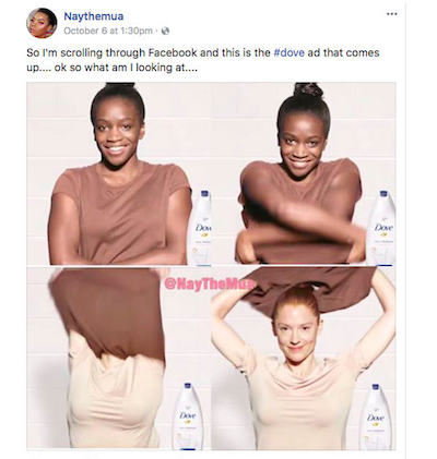 Siden har rasende brugere skældt Dove hæder og ære fra – og undskyldningen – An image we recently posted on Facebook missed the mark in representing women of color thoughtfully. We deeply regret the offense it caused – har ikke formildet sindene.