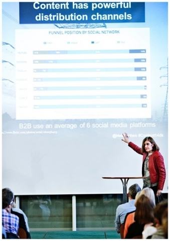 Hun var en af fire keynote-speakere på årets store content14-konference, og hun var i den bedste betydning af ordene ”in your face”. Ikke så megen bullshit, men en del tæsk til marketing-folket.