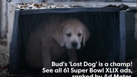 Den bortløbne hundehvalp fra øl-mærket Budweiser løb med en overbevisende førsteplads blandt årets Super Bowl-reklamefilm. Det viser de første målinger fra avisen USATodays AdMeter efter nattens kamp. Se de fem bedste reklamefilm her.