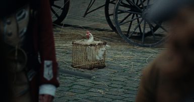Og hønen? Som jo pludselig ender med at ’løsne op’ for hele situationen?